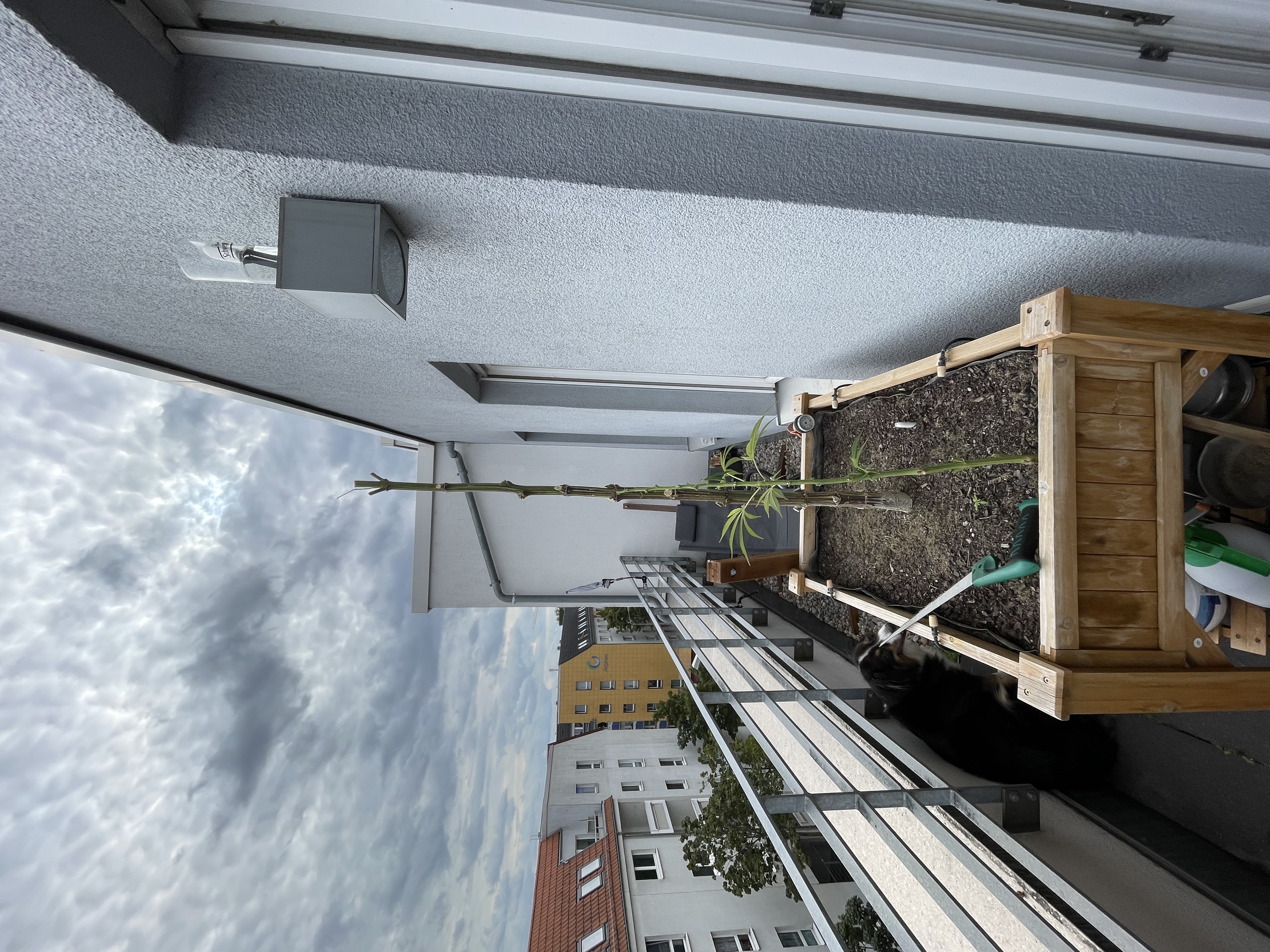 balcony temperature is 8.0°C (air) / 8.15°C (ground). Humidity is 84%. HHCC Flower Care says illuminance is 2438 lux, moisture is 36%, conductivity is 398 µS/cm and daily light integral is 1.33